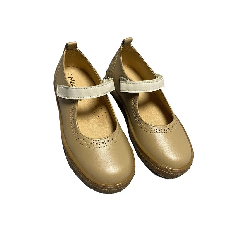 נעל סניקרס בובה בז' רצועה לבנה סגירת סקוץ בנות