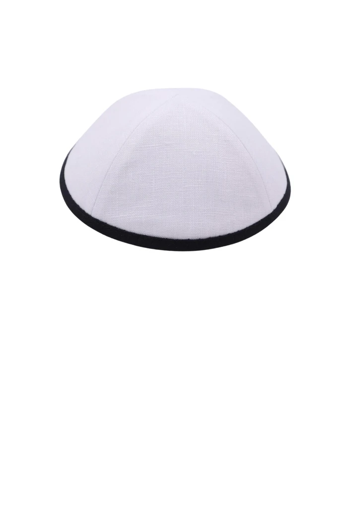 כיפה בד עור צבע לבן רקמת ״יחי״