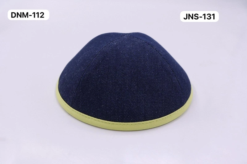 כיפה מבד גינס צבע כחול סרט בצבע צהוב