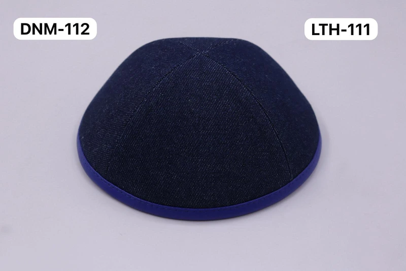 כיפה מבד גינס צבע כחול סרט עור בצבע כחול