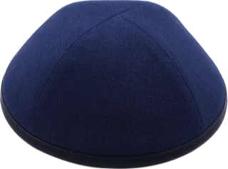כיפה מבד פשתן צבע כחול סרט עור שחור